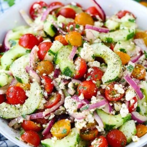 lettuce, tomato, cucumber, olive, red beetroot, feta cheese with honey-tamarind dressing